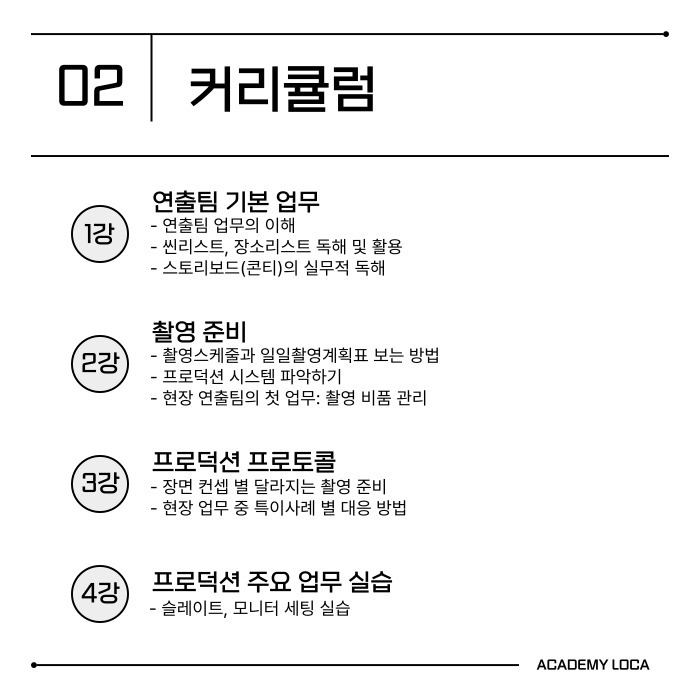 - 수강생에 한하여 <현업 조감독과의 1:1 개별 상담> 신청 가능합니다.