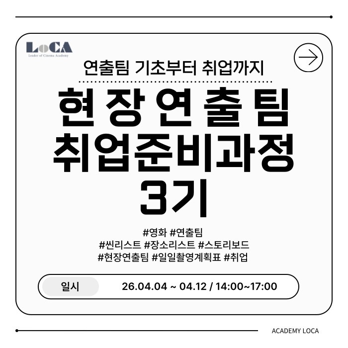 | [로카] <영화 비즈니스 취업 준비 과정 48기 in 성수> 공고 오픈! (얼리버드 ~3/19) (0) | 2026.03.12 |